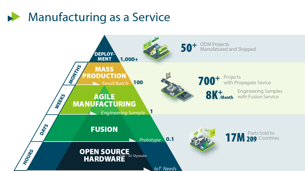 “Manufacturing as a Service” is one of the great opportunities offered to small entities that can go from a prototyped part in hours using the open hardware tools belonging the Seeed ecosystem to creating boards and custom products in larger quantities that are certified and compatible with the real market.