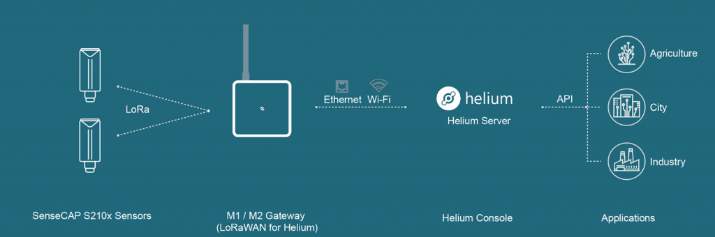 Nota: se la vostra area è coperta dalla rete Helium, potete utilizzarla direttamente integrando il dispositivo nella rete; in caso contrario, potete acquistare SenseCAP M1/M2 per costruire la vostra rete Helium.