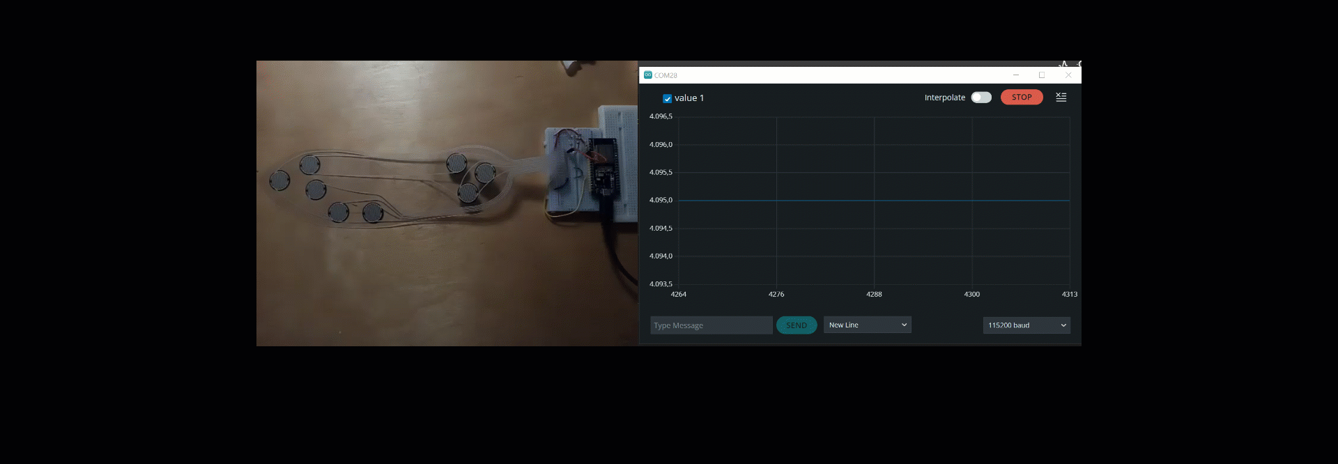 The first test was to use the sensor with a microcontroller, trying to visualize the pressure data coming from the membrane. After this first test we focused on making a visualization of the sensor using Node-RED. At this point the communication was still serial (there was a cable that the microcontroller used to communicate with the PC)