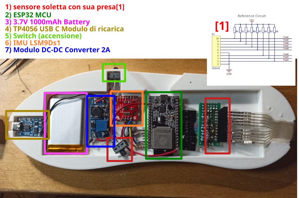 The sole design is by Antonio Benfante, whom I thank. The design of the electronics inside is as narrated below. for everything refer to Github and open issues there.
